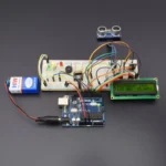 - Connect ultrasonic sensor’s Vcc to positive rail on the breadboard, ground to the negative rail, echo to D7 and trigger to D9 of Arduino UNO.